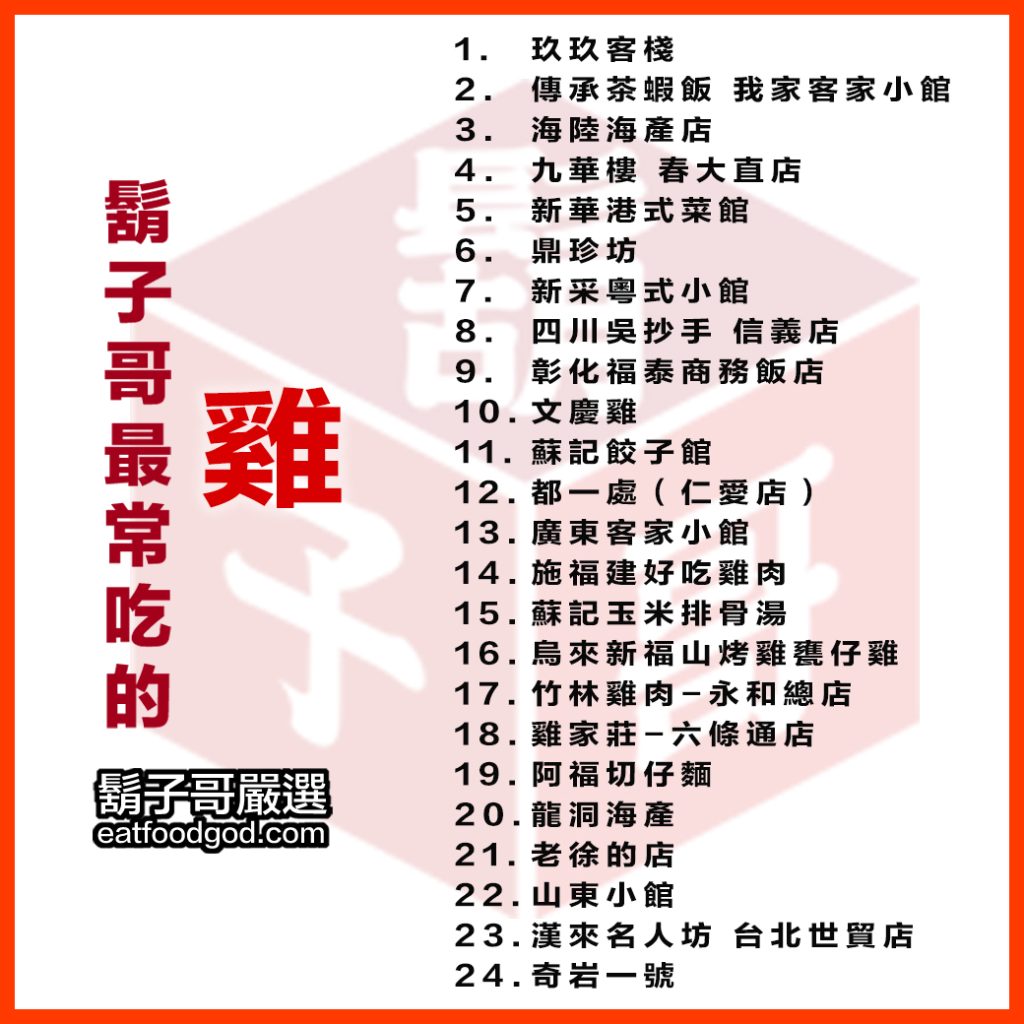 以下是食神鬍子哥推薦的 24家最常吃的雞,順序非喜好排名。