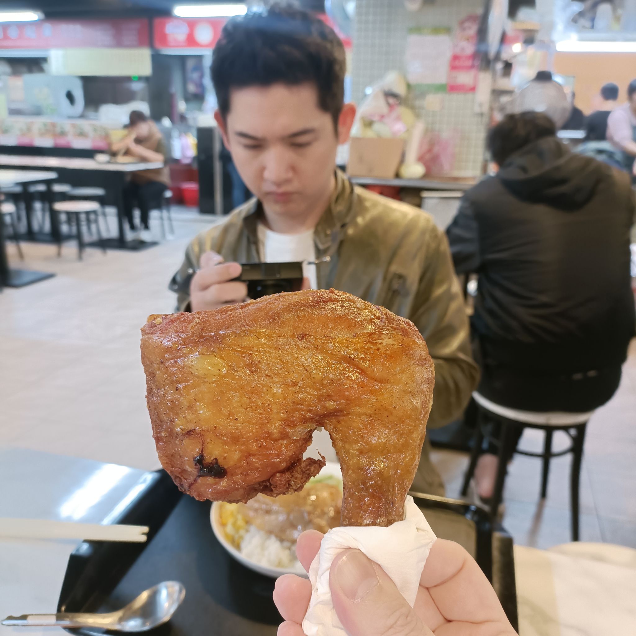 大同區早安,07:00放飯。 這是一根來自迪化街的雞腿,身體跟屁股已經被我吃掉了,來不及拍照了哈哈,請點魯肉飯再單點雞腿,配上超燙魚丸湯,完美的早餐。