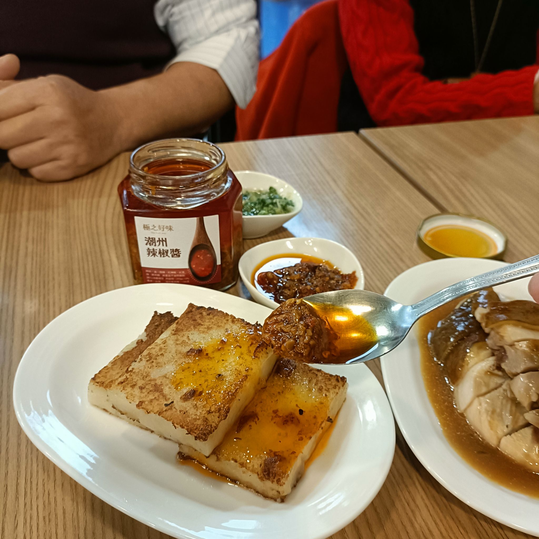 蘿蔔糕好,鎮店的辣椒醬更是好。 一間店用不用心,從細節來看,辣椒醬後面那一碟是,沾油雞的蔥油醬,已經很少燒臘店願意提供了,瓷盤,瓷碟,藏身在東區的巷子裡,舒服。