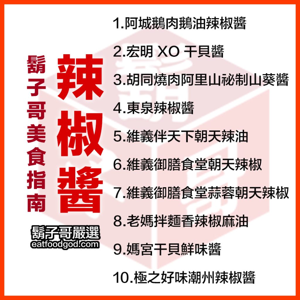 以下是食神鬍子哥推薦的 10 款最常吃的辣椒醬,順序非喜好排名。