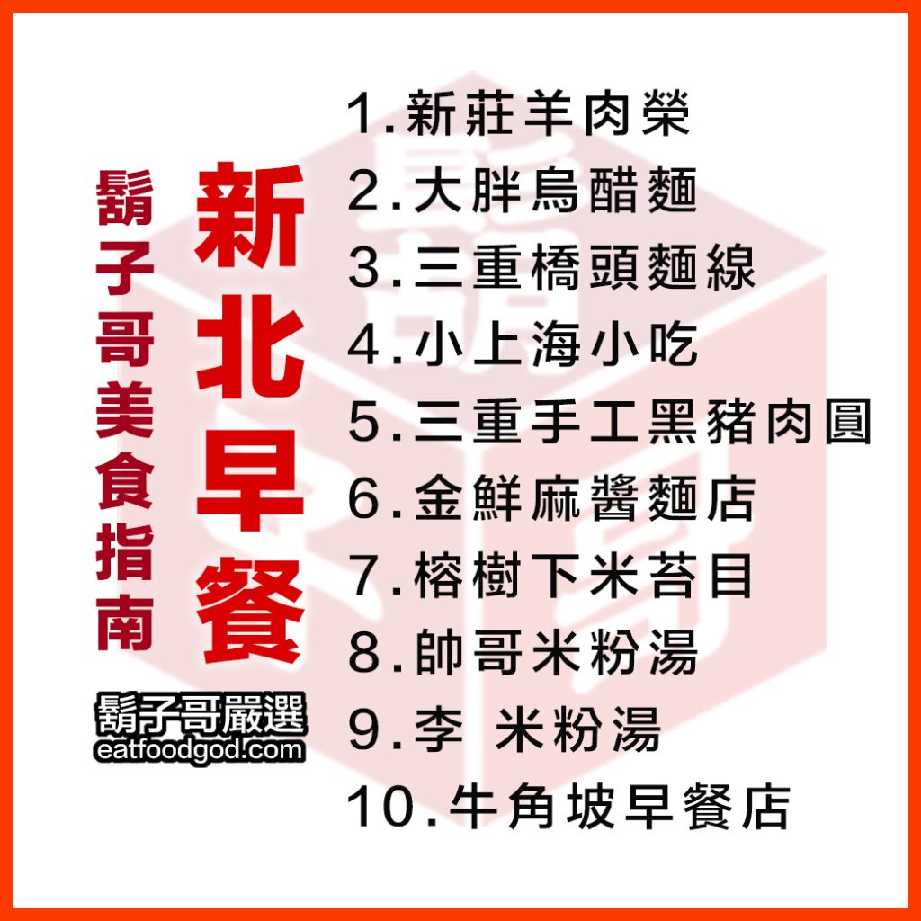 以下是食神鬍子哥推薦的 10 家最常吃的新北早餐,順序非喜好排名。