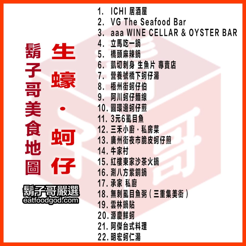 以下是食神鬍子哥推薦的 22 家最常吃的生蠔 & 蚵仔,順序非喜好排名。