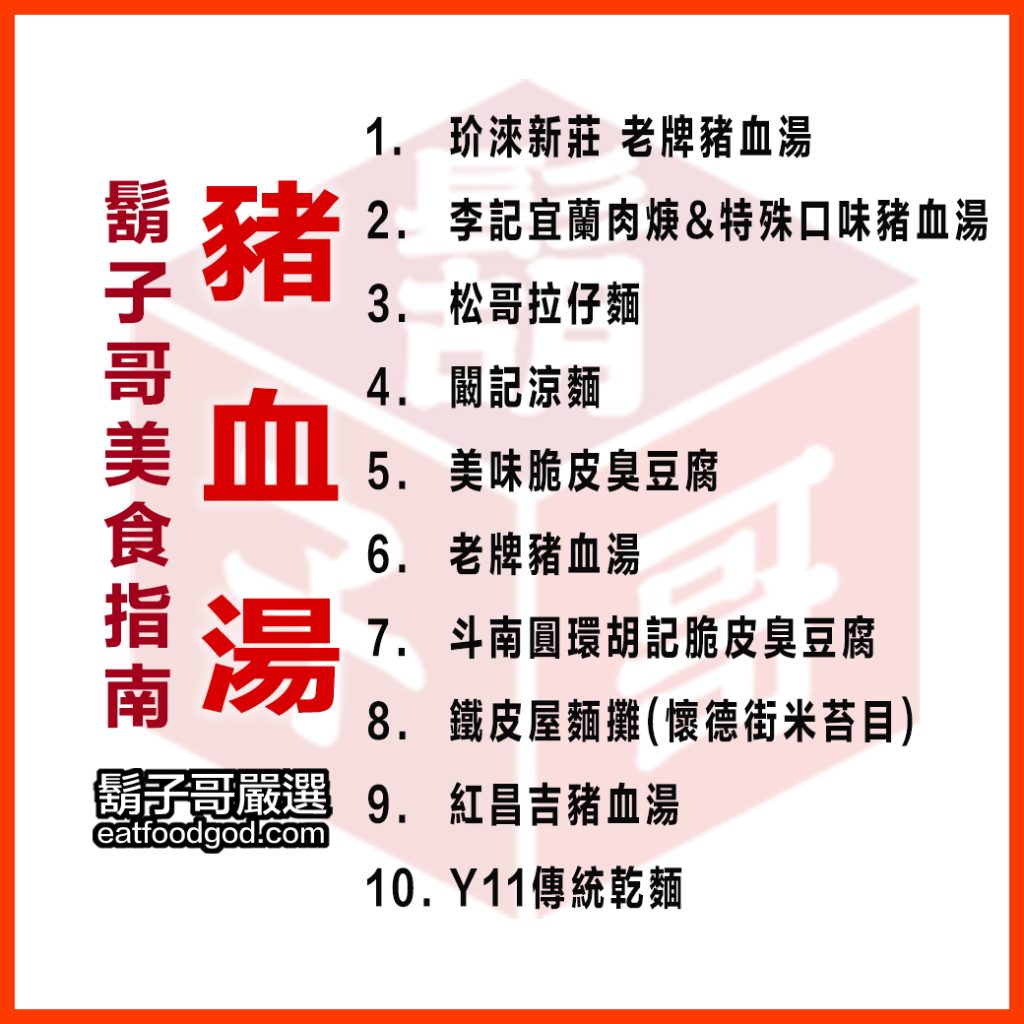 以下是食神鬍子哥推薦的 10 家最常吃的豬血湯,順序非喜好排名。