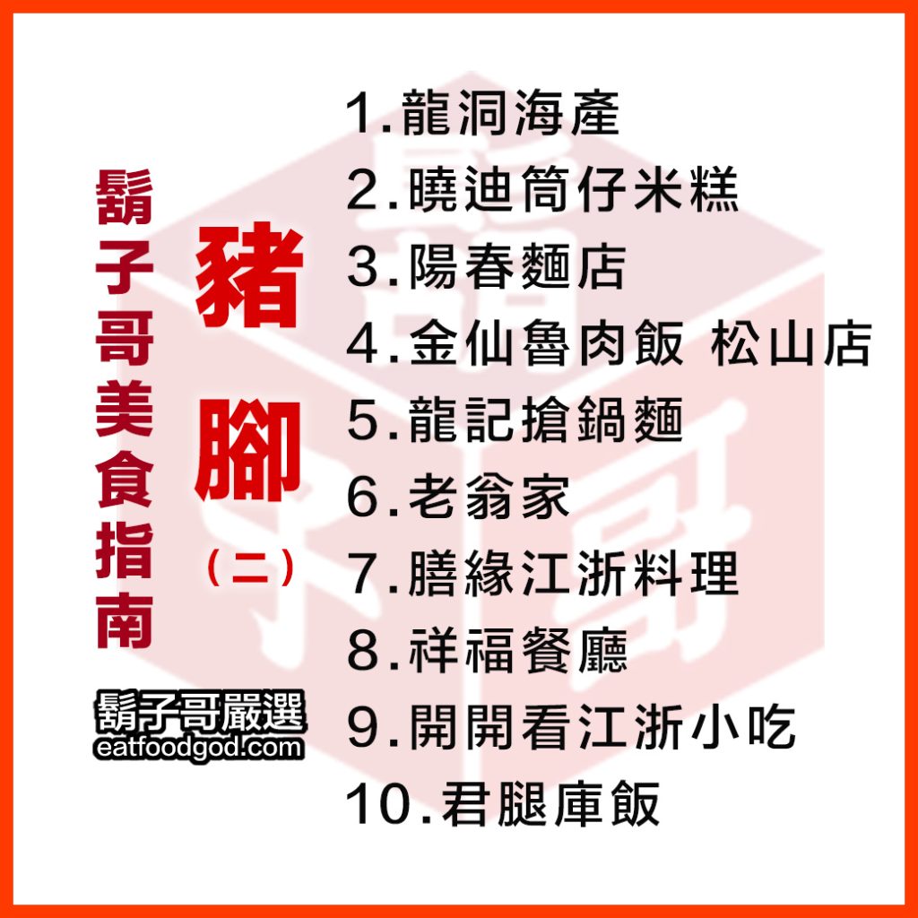 以下是食神鬍子哥推薦的 10 家最常吃的豬腳第二篇,順序非喜好排名。