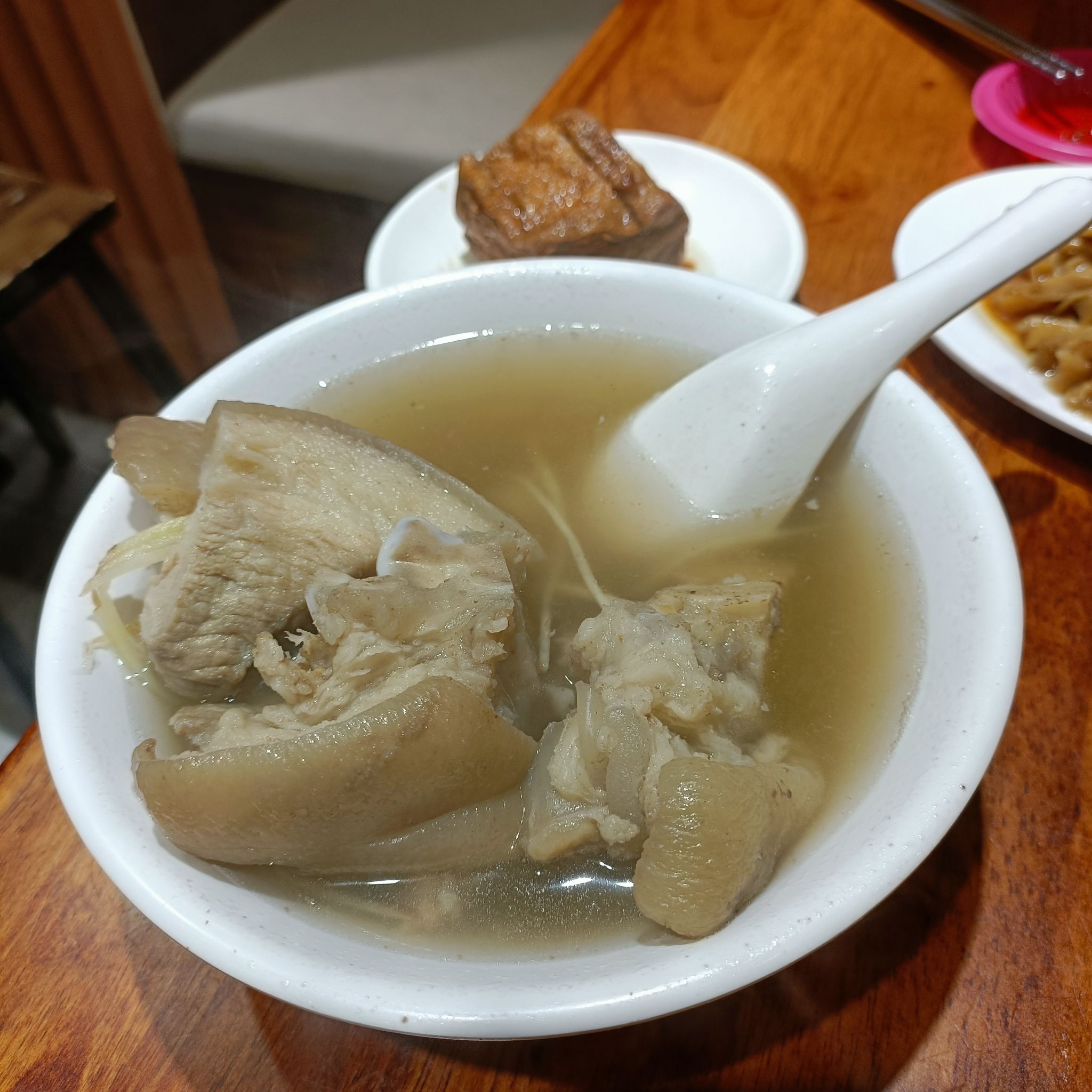 最近記性真的不太好, 我都忘了其實他豬腳也超級厲害。 有四點,腳蹄,腿肉,滿滿的4塊, 居然才80元,根本南機場之光。 芋頭排骨酥湯,金針排骨湯, 每次來都要各喝一碗,燙到爆炸。 早上11點到晚上10點中間又不休息。 想吃就來,自由自在,真是舒服。