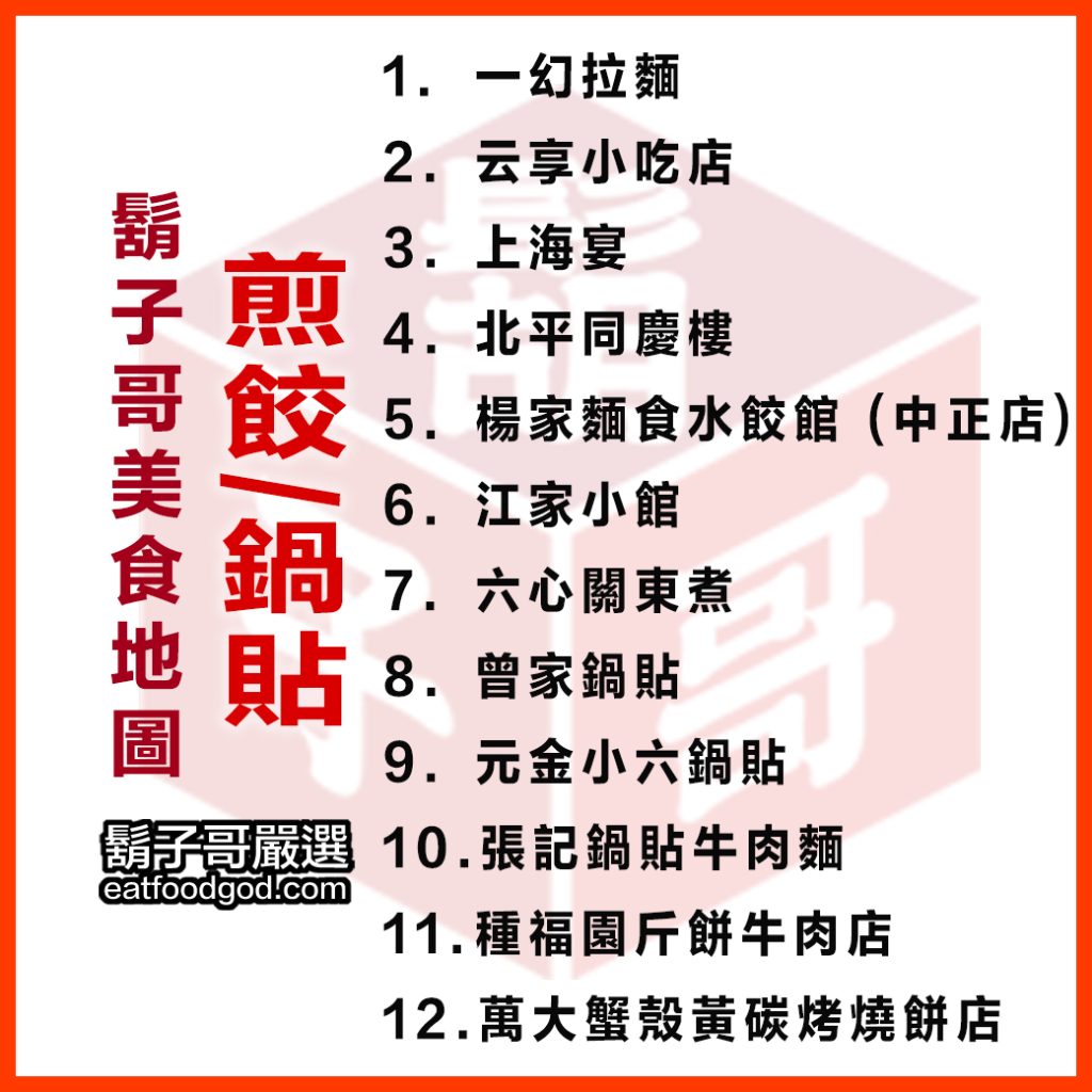 以下是食神鬍子哥推薦的 12 款最常吃的煎餃/鍋貼,順序非喜好排名。