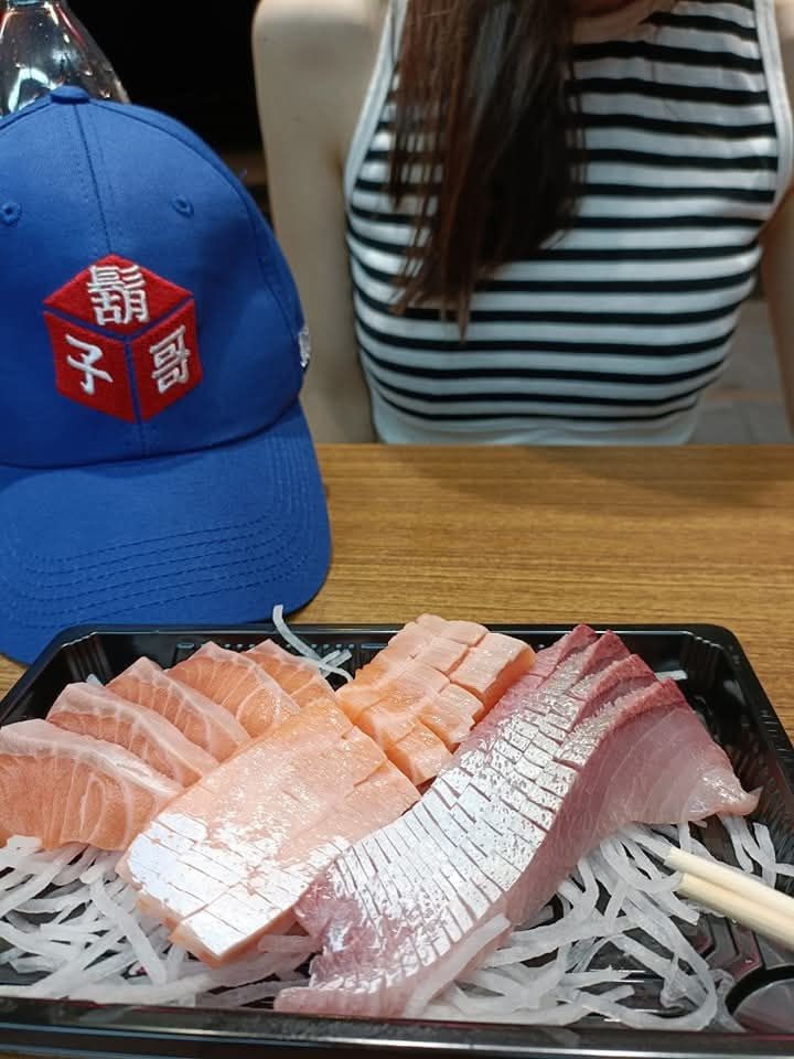 板橋新發現的秘密基地,開到半夜01:30,這一盤是:鮭魚,鮭魚肚,紅甘肚,後來貪心又加點了旗魚,煙仔虎,炙燒鮪魚。生魚片新鮮又好吃,重點是有夠便宜!!我實在不敢寫!!價錢po出來,以後大概就排爆了。 (結果貪心發現隔壁居然有一間鹹酥雞,又買了300元在車上嗑光,根本飽到天靈蓋…)
