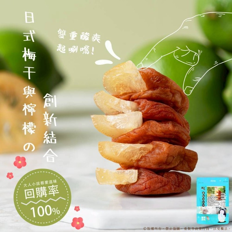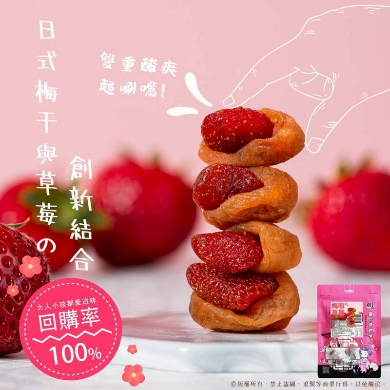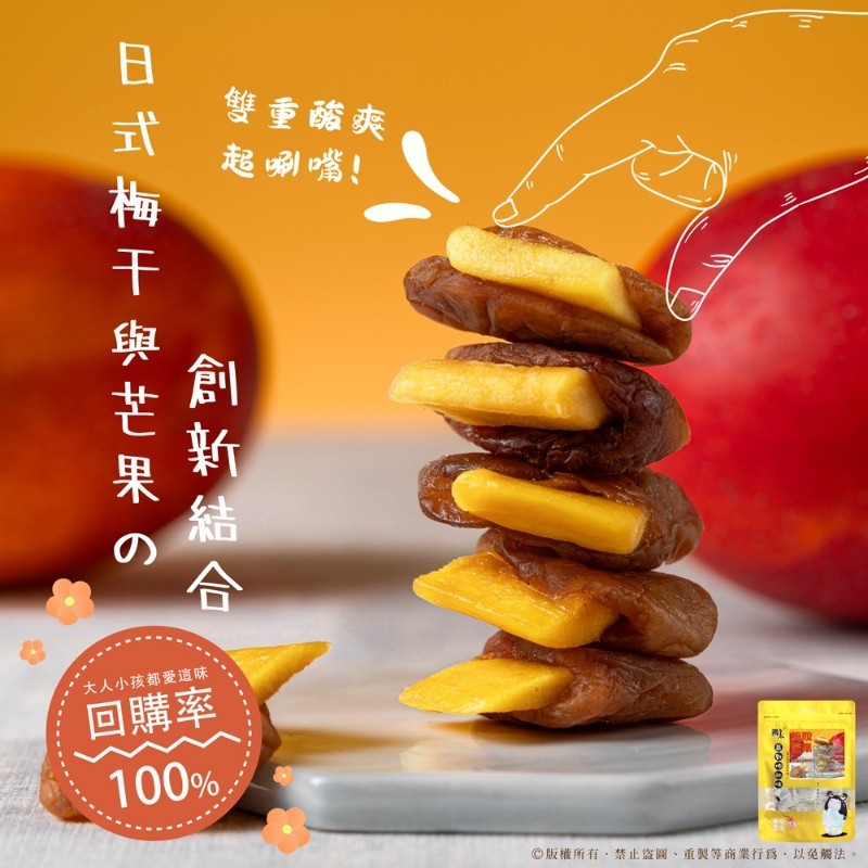 挑選大粒厚實無籽梅肉製作!口感多層酸甜,絕妙搭配組合。低溫慢烘鎖住果肉新鮮營養,獨立鎖鮮包裝,衛生又方便攜帶,一口在嘴裡,感受酸甜滋味