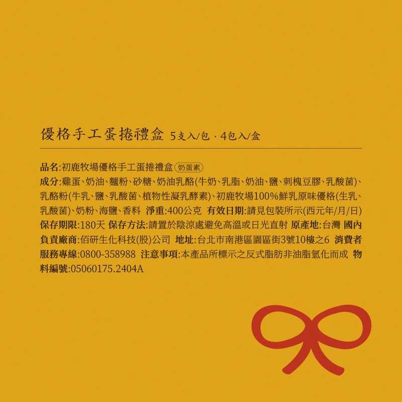 ・品名:初鹿牧場優格手工蛋捲禮盒 (奶蛋素)