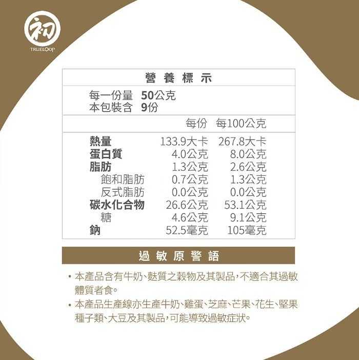 ・本產品含牛奶及其製品與大豆製品、含麩質之穀物製品~