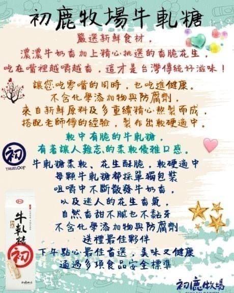 ・品名:初鹿牧場牛軋糖 (過年、中秋 商品)