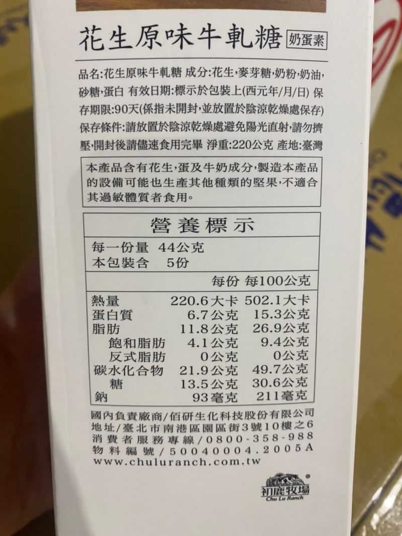 ・成份:花生、麥芽糖、奶粉、奶油、砂糖、蛋白