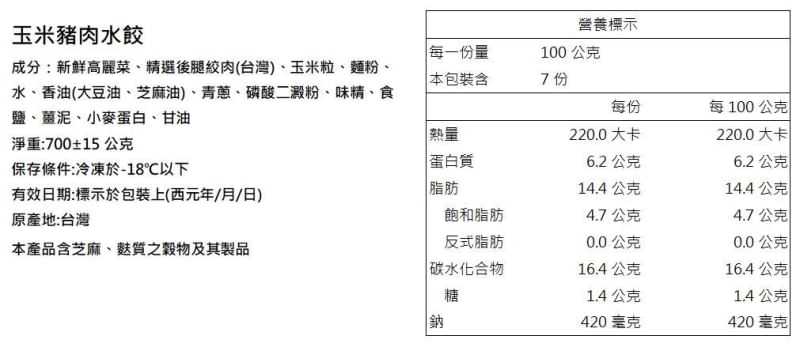 ・過敏原資訊:本產品含芝麻麩質之穀物,及其製品。