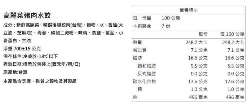 ・過敏原資訊:本產品含芝麻麩質之穀物,及其製品。