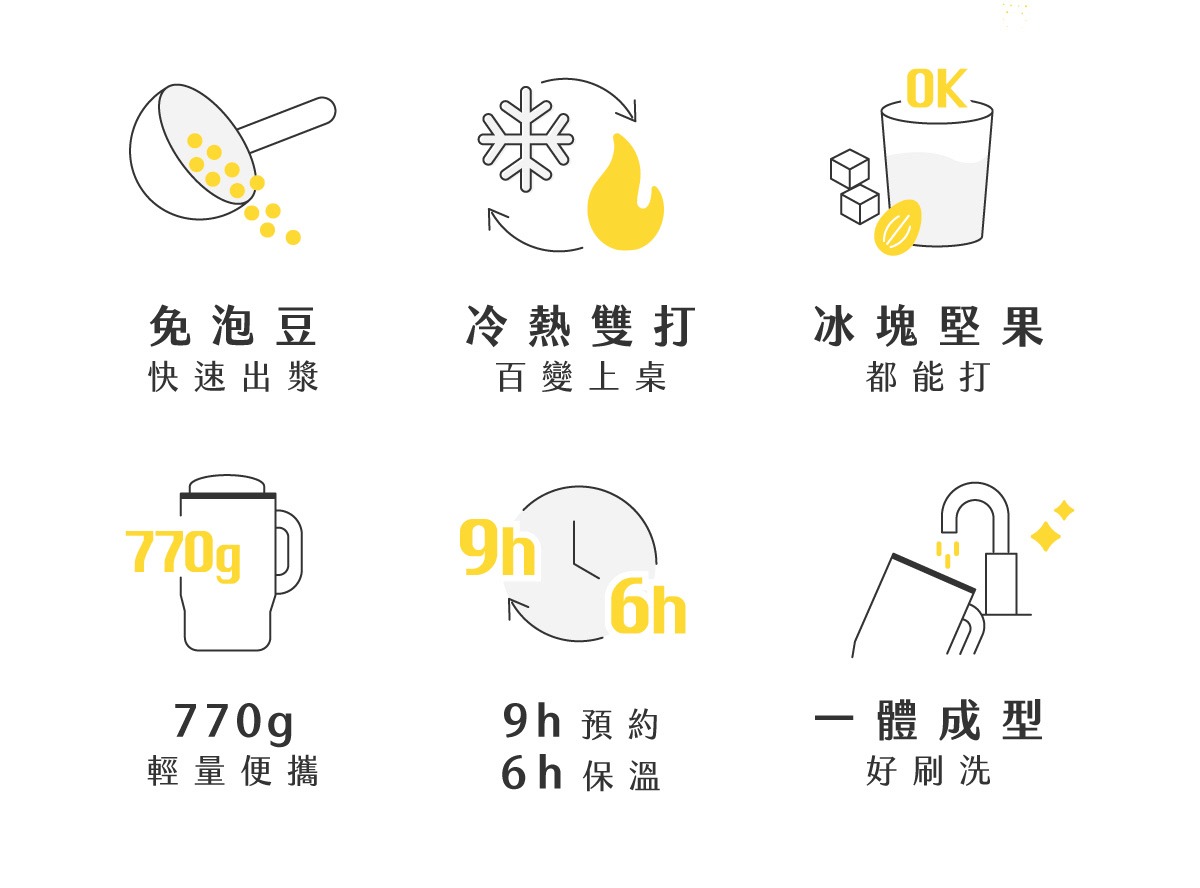 ・一般豆漿機動輒2~3公斤,難以攜帶。熱豆杯好收納不佔位,無論在家、辦公室或旅途中,都能輕鬆使用。
