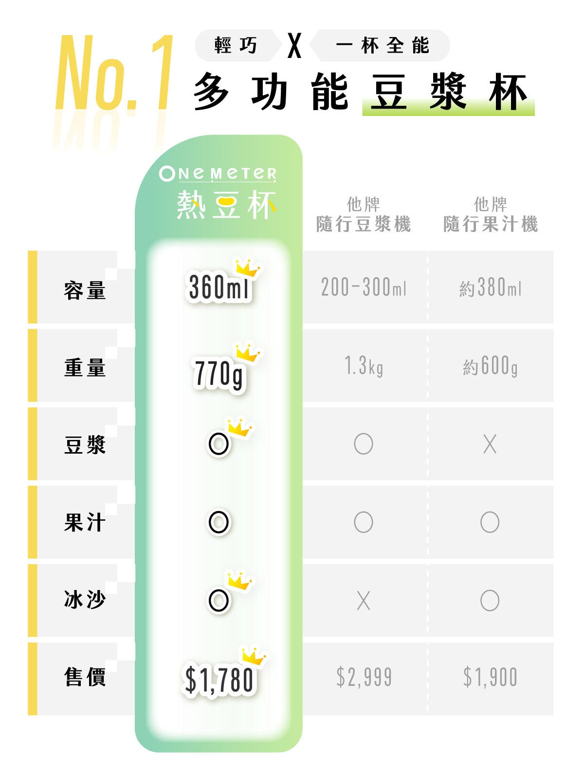・一般豆漿機動輒2~3公斤,難以攜帶。熱豆杯好收納不佔位,無論在家、辦公室或旅途中,都能輕鬆使用。