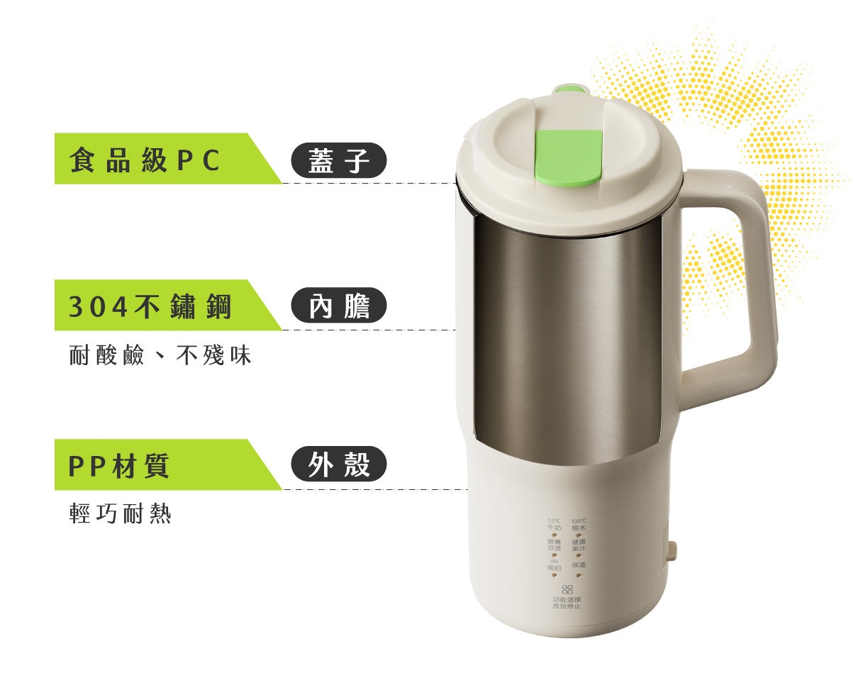 ・豆漿、果汁、熱牛奶、燒水輕鬆搞定,還能預約時間,起床就有熱飲等著你。