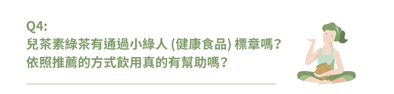 目前兒茶素綠茶尚未取得健康食品標章,因此相較於市售罐裝綠茶,我們無意也無法宣稱任何療效;然而經過一兩年的研發創新,我們發現這款兒茶素綠茶,的確具備相當高的兒茶素濃度 (每包6g,含 300-450mg 兒茶素),且經過SGS相關檢驗單位驗證。另外相對於既存產品亦有更佳的風味,也獲得銷售破百萬包的支持!希望能將它推廣給更多喜歡喝綠茶的消費者。