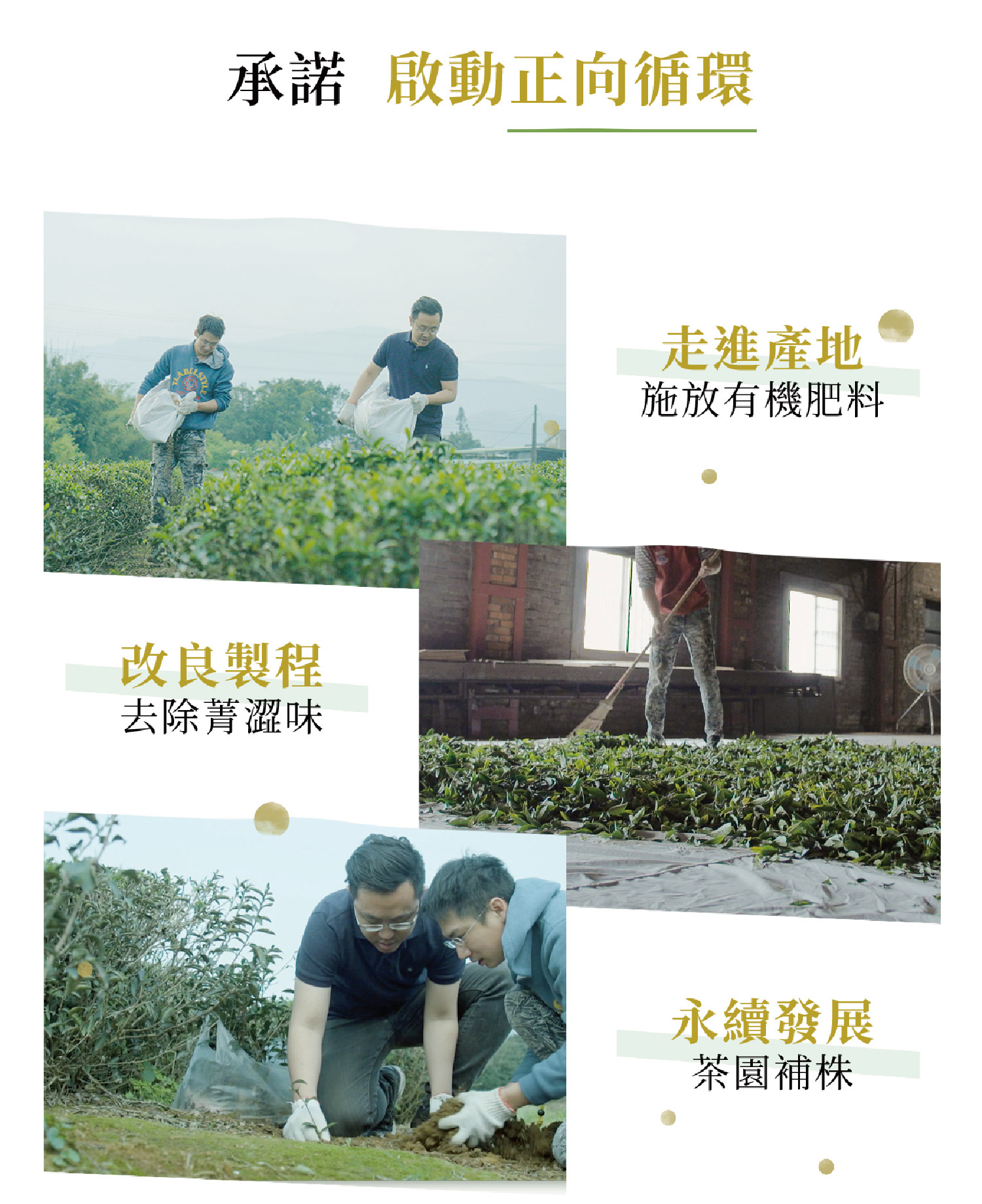 發現茶想要創造一個有理念的正向循環,再造台灣在地好茶,不願讓產區繼續凋零。 我們協同桃竹苗地區的「福源茶廠」,在你在享用好茶的同時,我們將持續進行土壤培肥管理、復育茶樹,生長茁壯的好茶收成後再回到您的杯子裡,為的就是延續這個產區優秀的綠茶!