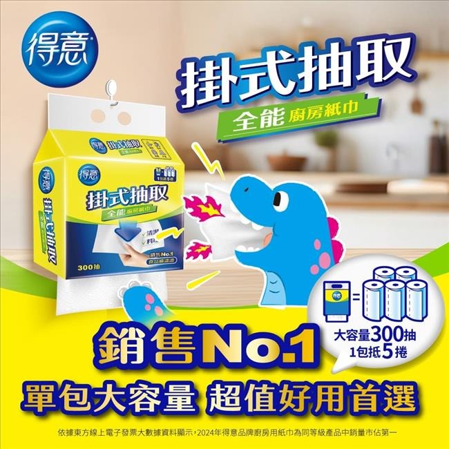得意掛式抽取全能廚房紙巾300抽10袋
